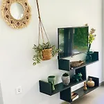 Dieses Apartment bietet Gästen einen Patio und eine Sitzecke, ausgestattet mit einer Klimaanlage und modernen Annehmlichkeiten wie einem Flachbildfernseher mit Satellitenkanälen und einem Fernsehen mit mehreren Kanälen. Diese Unterkunft ist auch mit einem Sofa ausgestattet. Das Apartment hat 1 Schlafzimmer. Es gibt 1 Bad mit einer getrennten Toilette und einer Dusche und einem Haartrockner und Hausschuhen.